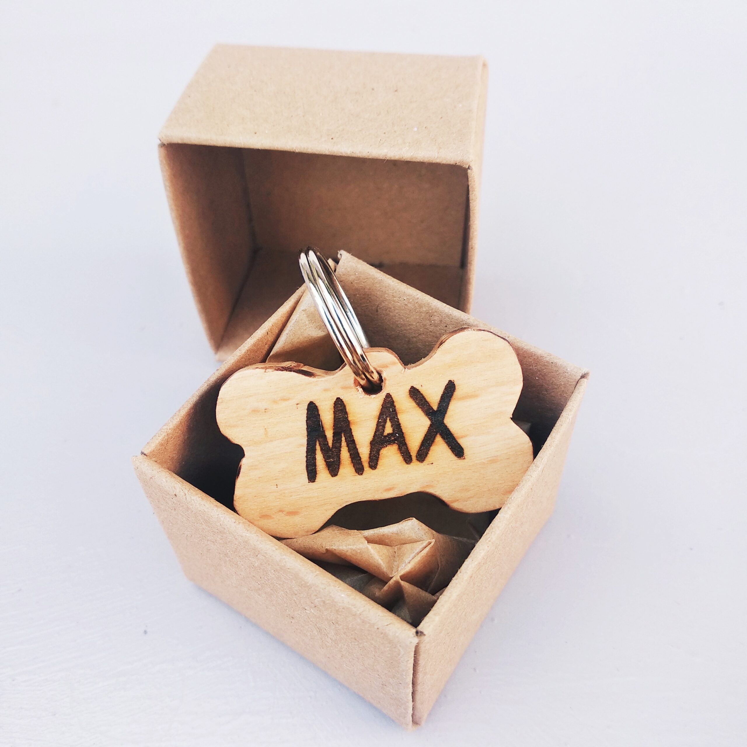 Το σχήμα κόκαλου προσθέτει μια παιχνιδιάρικη και χαριτωμένη πινελιά, ενώ η φυσική υφή του ξύλου δίνει μια αίσθηση ζεστασιάς και φροντίδας. Το “Dog ID” είναι ιδανικό για χάραξη, επιτρέποντάς σας να προσθέσετε το όνομα του σκύλου σας, το τηλέφωνο επικοινωνίας ή οποιαδήποτε άλλη σημαντική πληροφορία, διασφαλίζοντας ότι ο αγαπημένος σας φίλος είναι πάντα ασφαλής και αναγνωρίσιμος.