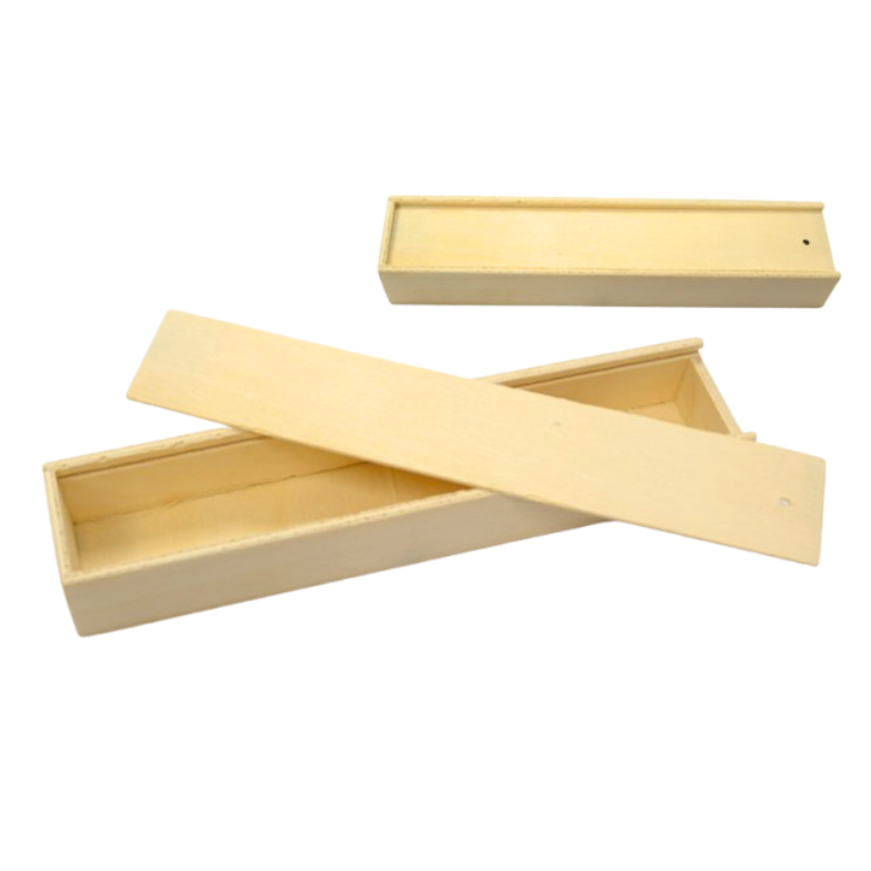 Το φυσικό ξύλο της κασετίνας δίνει μια ζεστή, λιτή αισθητική, ενώ το συρόμενο καπάκι ανοίγει εύκολα, κάνοντάς την πρακτική για το σχολείο, το γραφείο ή το σπίτι.