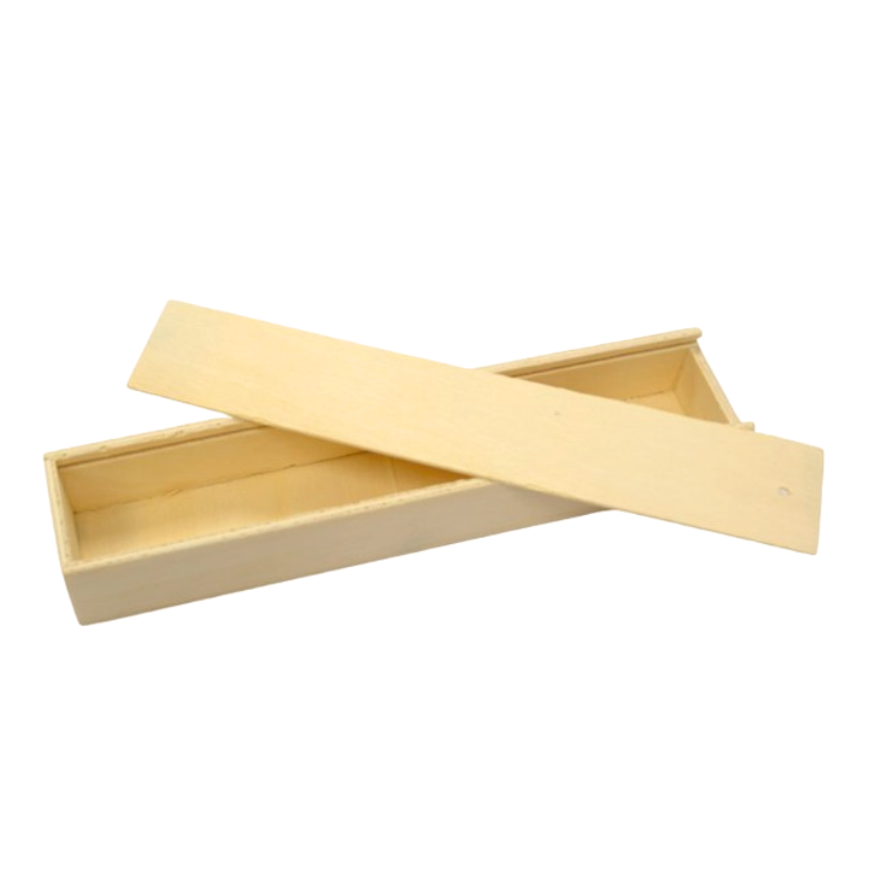 Το φυσικό ξύλο της κασετίνας δίνει μια ζεστή, λιτή αισθητική, ενώ το συρόμενο καπάκι ανοίγει εύκολα, κάνοντάς την πρακτική για το σχολείο, το γραφείο ή το σπίτι.